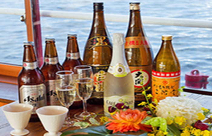 アルコール:・ビール・赤ワイン・白ワイン・焼酎(ロック、水割り、烏龍茶割り)